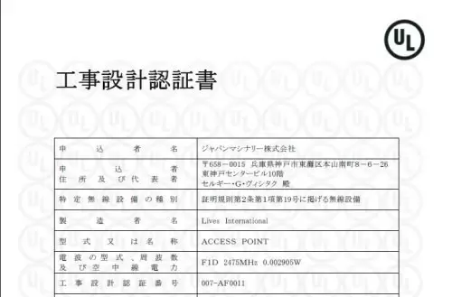 Recently our partner in Japan, Japan Machinery Company applied and obtained the radio waves standards compliance certification for Lives International real time data loggers and access point (GMP RF Series).
