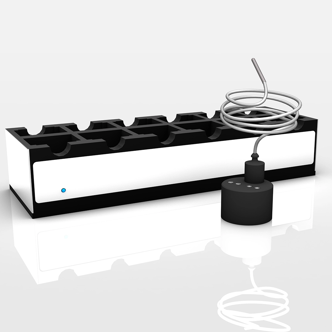 Standard data logger with long flexible sensor for recording temperature values. Easy to program and install, no data loss during validation process, multiple users can share the same database simultaneously. Remote factory calibration on users site.