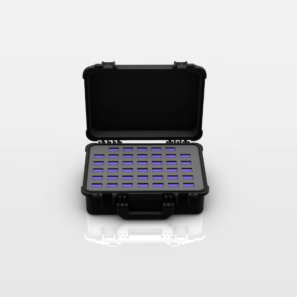 Small size real time temperature data logger with flexible temperature sensor, for placing between vials. Fits the height and diameter of 10R vials.